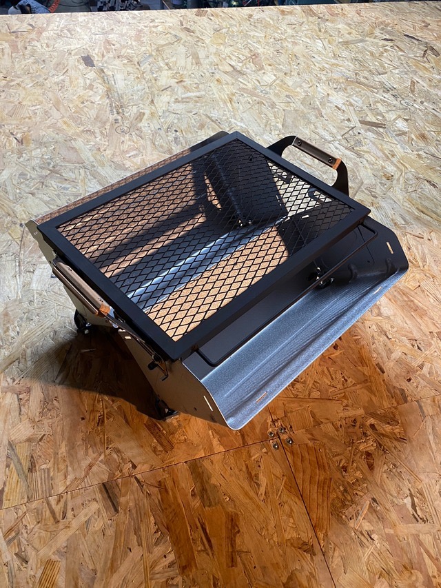 ロストルを中段に設置すればバーナーもセットでき直火調理も可能。