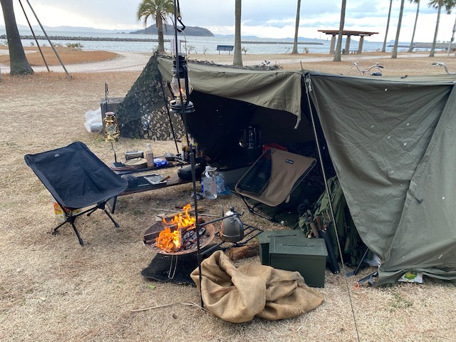 キャンプ用品がたくさん乗せれるアイアンテーブル!